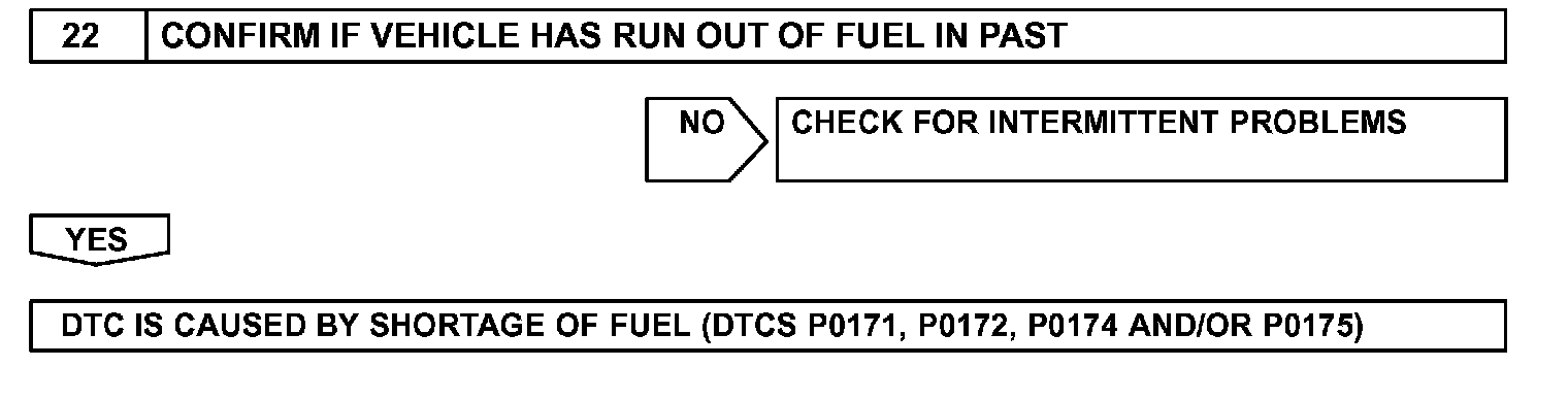- If the vehicle runs out of fuel, the air-fuel ratio is LEAN and DTC P0171 or P0174 may be recorded. The MIL then illuminates.