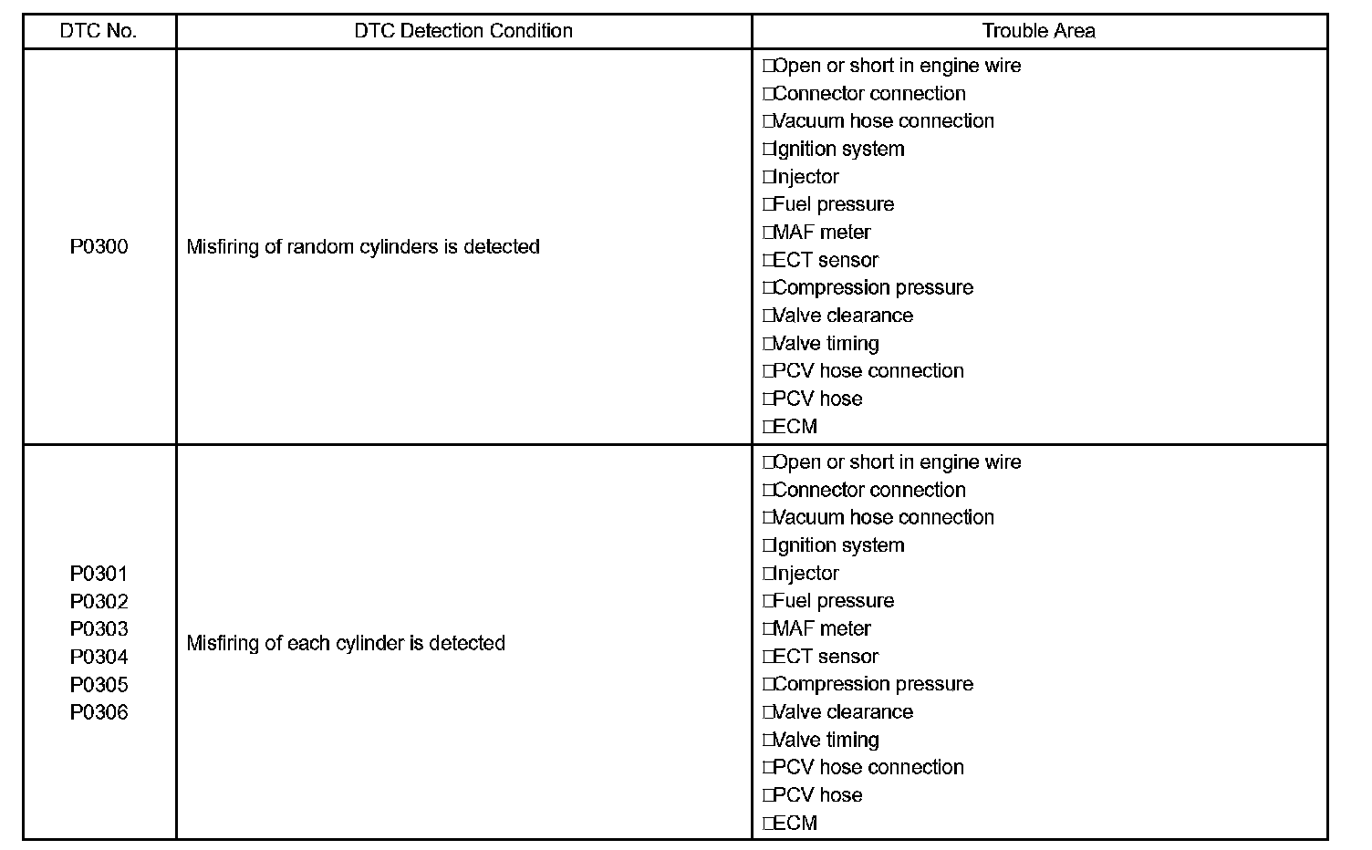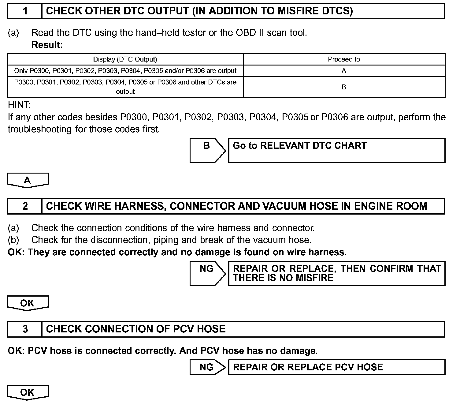 - If DTCs besides misfire DTCs are memorized simultaneously, troubleshoot the non-misfire DTCs first.