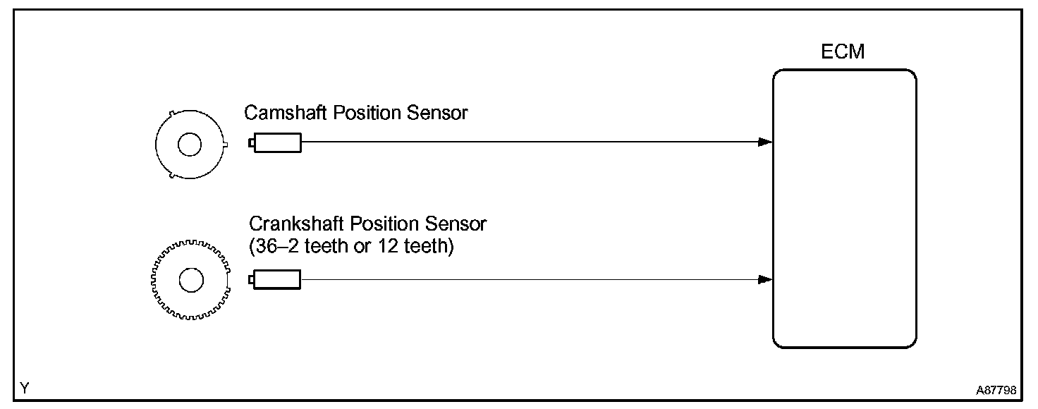 When a misfire occurs in the engine, hydrocarbons (HC) enter the exhaust in high concentrations. If this HC concentration is high enough, there could be an increase in exhaust emissions levels. High concentrations of HC can also cause to temperature of the catalyst to increase, possibly damaging the catalyst. To prevent this increase in emissions and limit the possibility of thermal damage, the ECM monitors the misfire rate. When the temperature of the catalyst reaches a point of thermal degradation, the ECM will blink the MIL. For monitoring misfire, the ECM uses both the camshaft position sensor and the crankshaft position sensor. The camshaft position sensor is used to identify misfiring cylinders and the crankshaft position sensor is used to measure variations in the crankshaft rotation speed. The misfire counter increments when crankshaft rotation speed variations exceed threshold values.