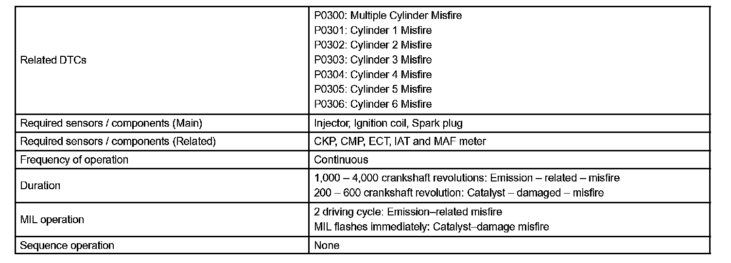 - After the first 1,000 engine revolutions after the engine starts, an excessive misfire rate (approximately 20 to 50 misfire per 1,000 engine revolutions) occurs 4 times.