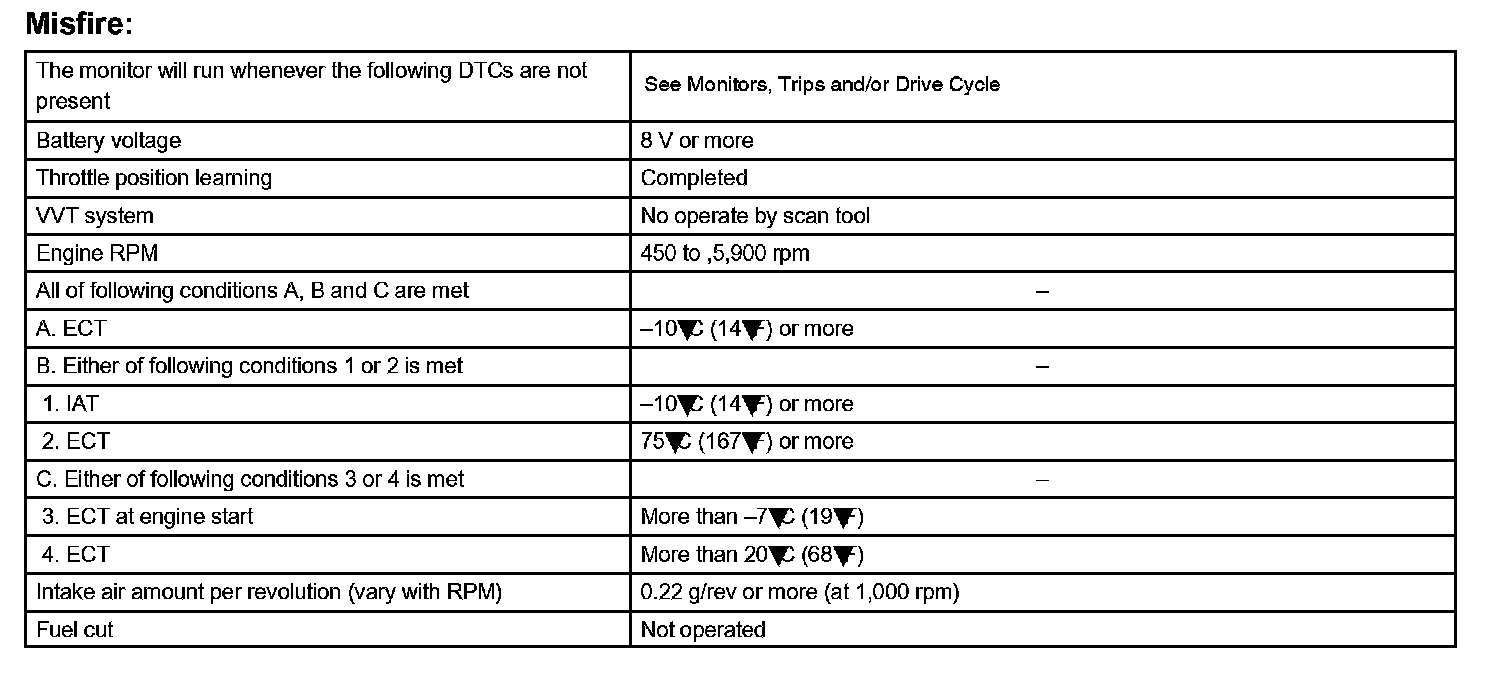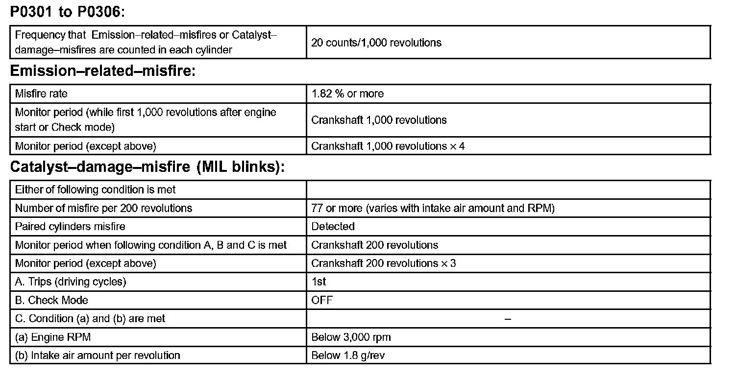 - During the first 1,000 engine revolutions after the engine starts, an excessive misfire rate (approximately 20 to 50 misfire per 1,000 engine revolutions) occurs 1 time.
