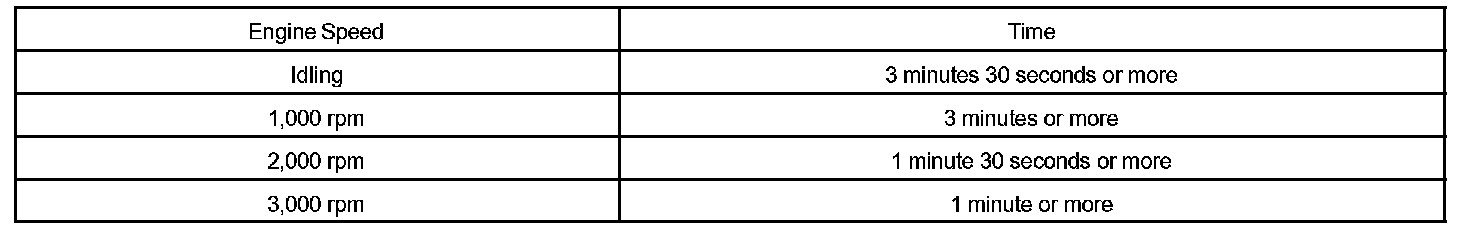 HINT: In order to memorize the misfire DTC, it is necessary to drive with MISFIRE RPM, MISFIRE LOAD in the DATA LIST for the period of time in the chart. Take care not to turn the ignition switch OFF. Turning the ignition switch OFF switches the diagnosis system from check mode to normal mode and all DTCs, freeze frame data and other data are erased.