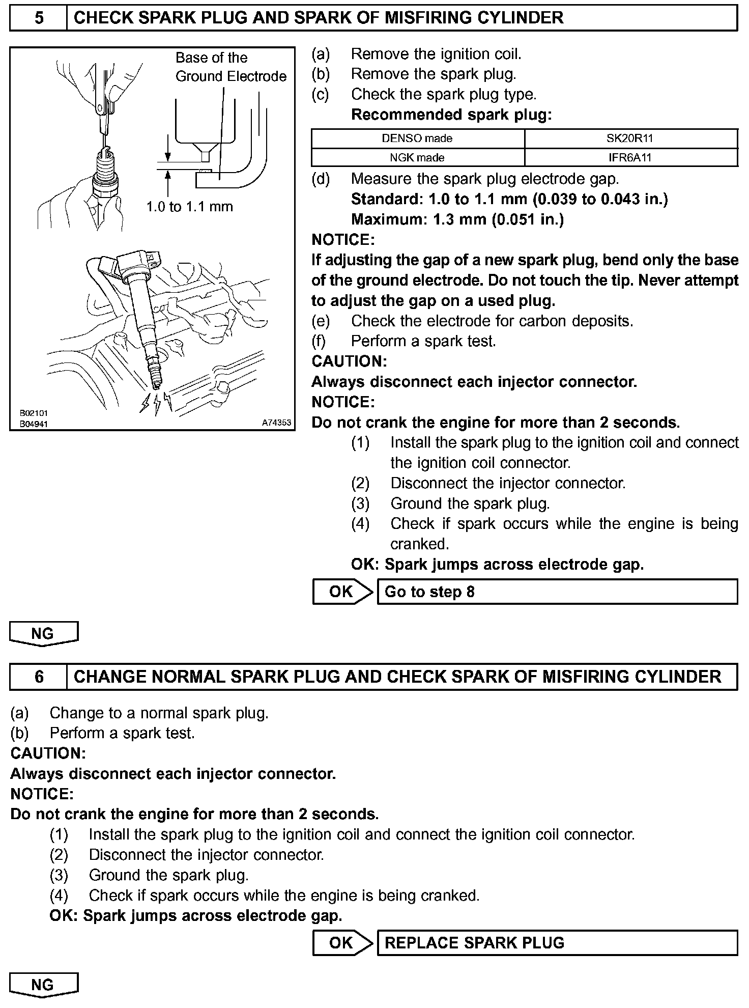 - If the misfire cannot be reproduced, the following reasons may apply: 1) the vehicle has low fuel, 2) improper fuel is being used, and 3) the ignition plug is contaminated.