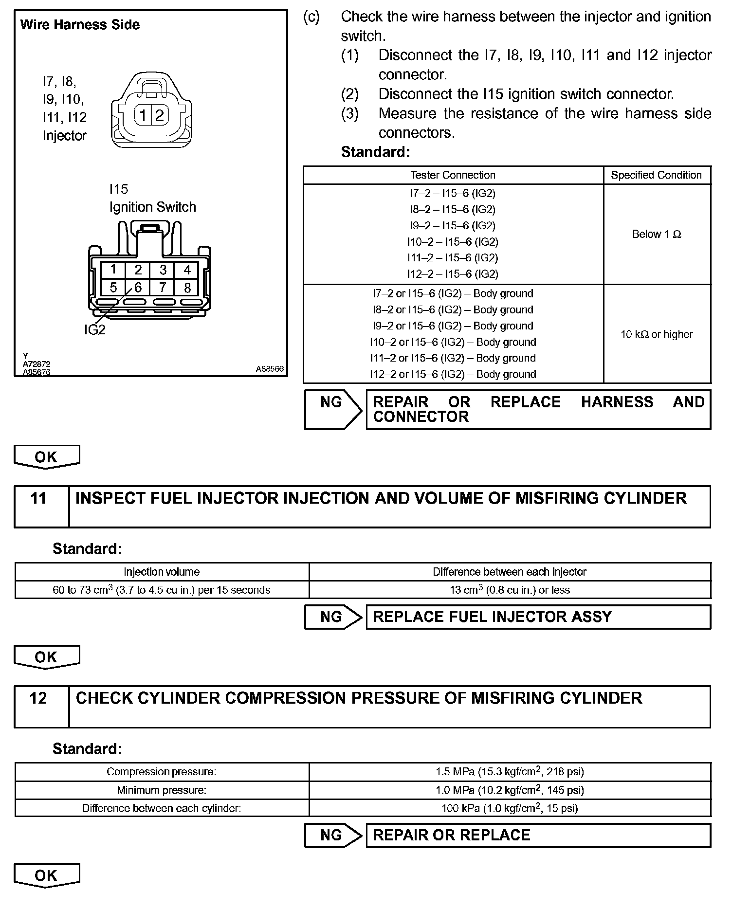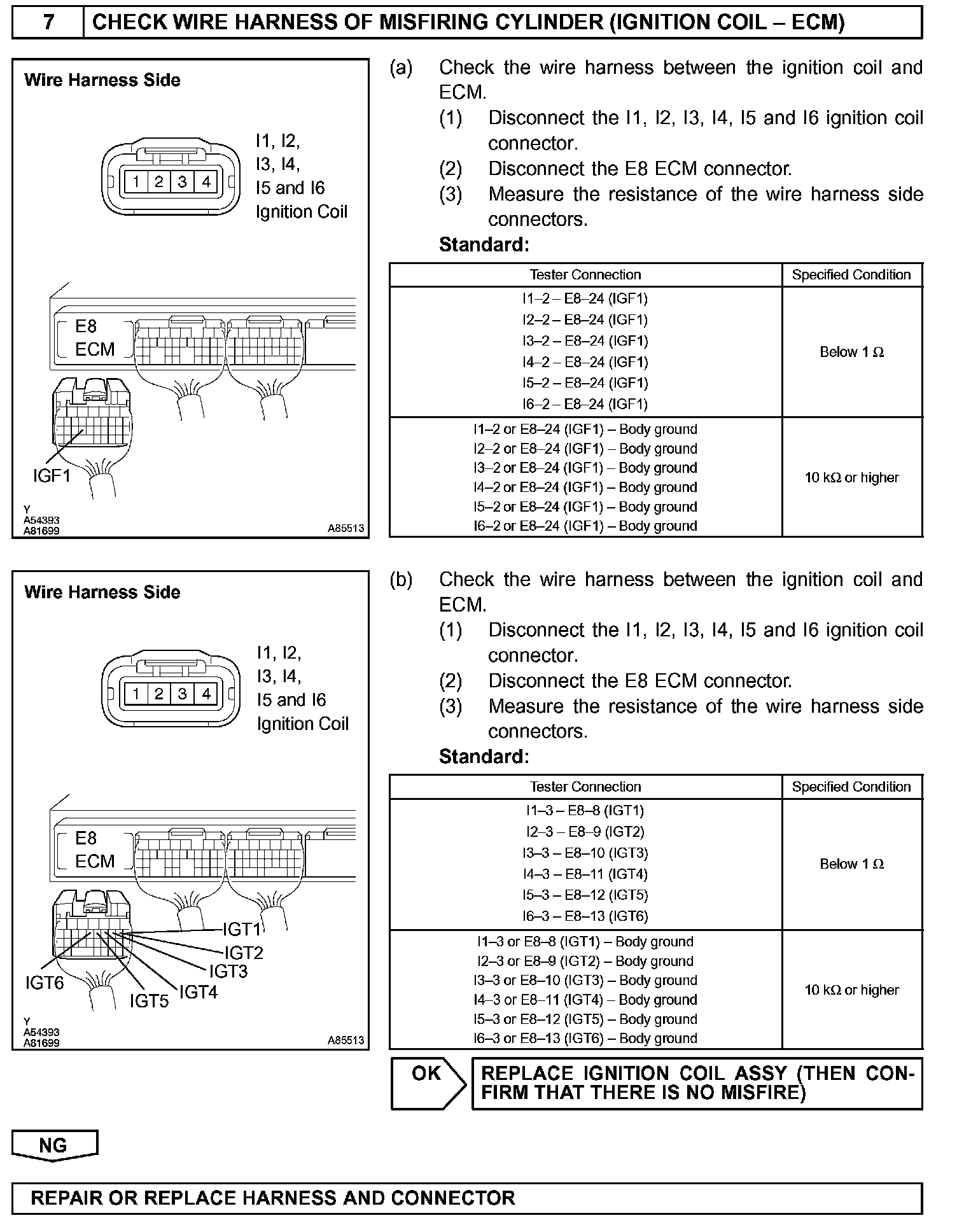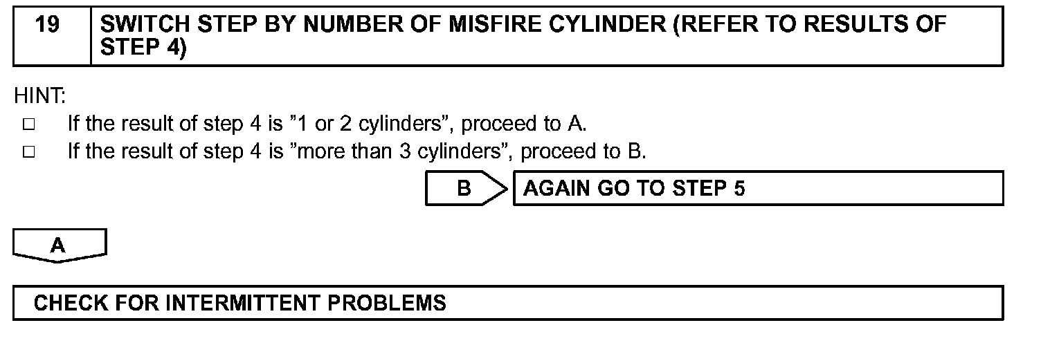 4. Perform repairs on the cylinder that has a high misfire ratio. Or repair the cylinder indicated by the DTC.