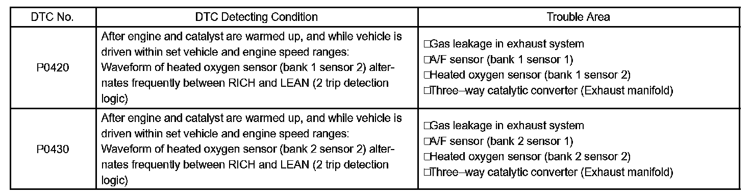 DTC P0430 CATALYST SYSTEM EFFICIENCY BELOW THRESHOLD (BANK 2)MONITOR DESCRIPTION