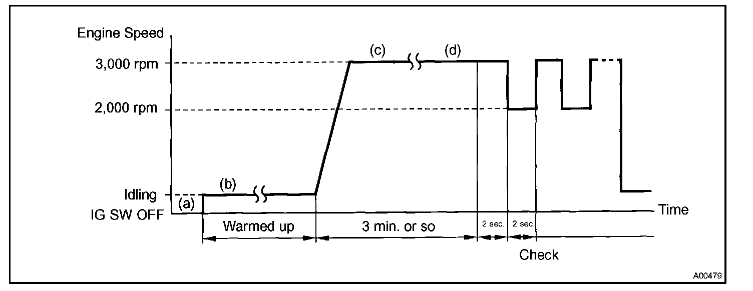 3. Warm up the engine by running the engine speed at 2,500 rpm for approximately 90 seconds.