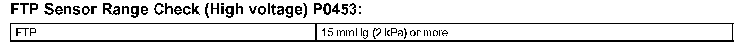 When pressure indicated by the vapor pressure sensor deviates below -3.999 kPa (-30 mmHg) or above 1.999 kPa (15 mmHg), the ECM interprets this as a malfunction in the vapor pressure sensor. The ECM will turn on the MIL and a DTC will be set.