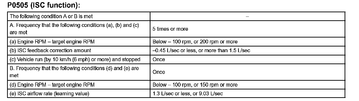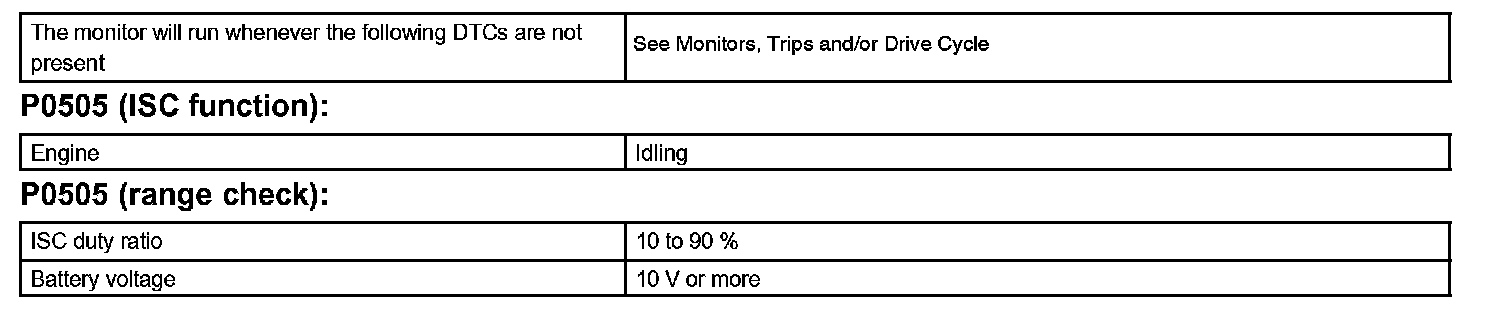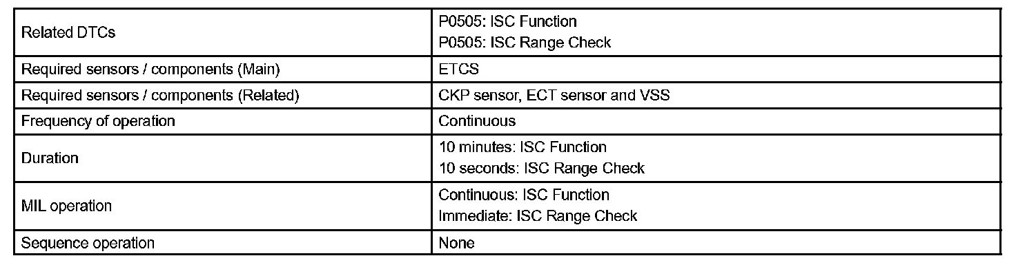 DTC P0505 IDLE AIR CONTROL SYSTEMMONITOR DESCRIPTION