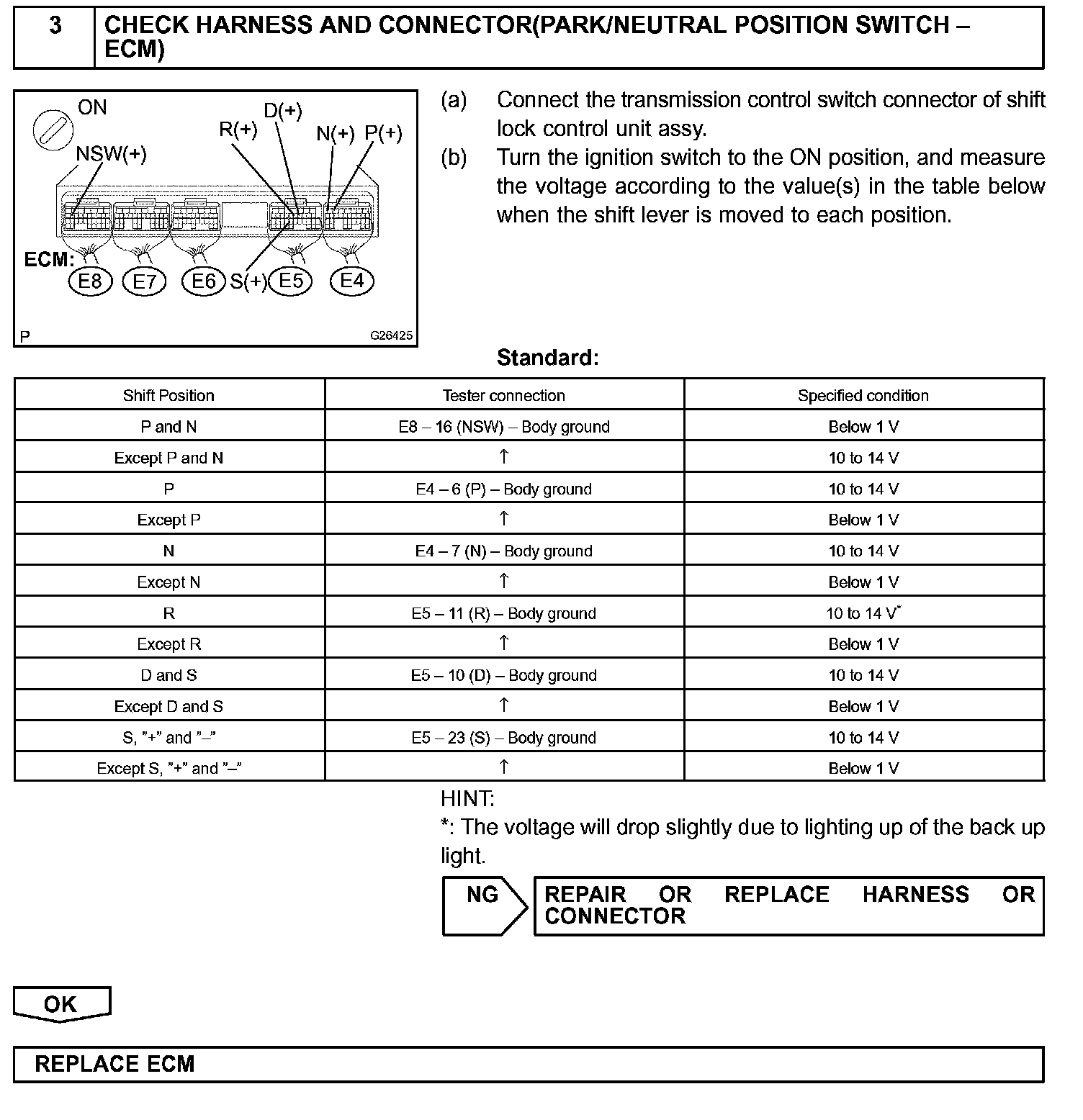 The park/neutral position switch detects the shift lever position and sends signals to the ECM.
