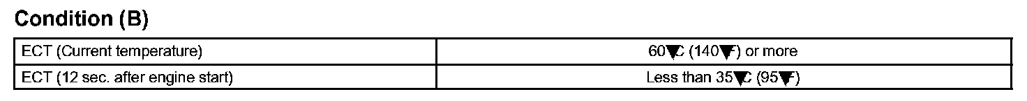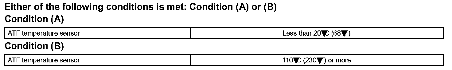 When the ATF temperature is 110 °C (230 °F) or more after 17 minutes of engine cold start, the ECM also determines this as a fault, turns on the MIL, and stores the DTC.