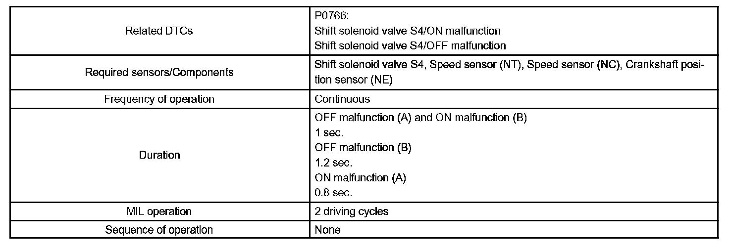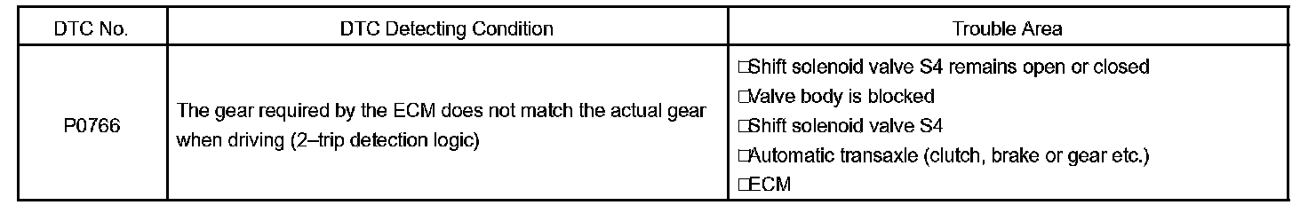 DTC P0766 SHIFT SOLENOID "D" PERFORMANCE (SHIFT SOLENOID VALVE S4)SYSTEM DESCRIPTION
