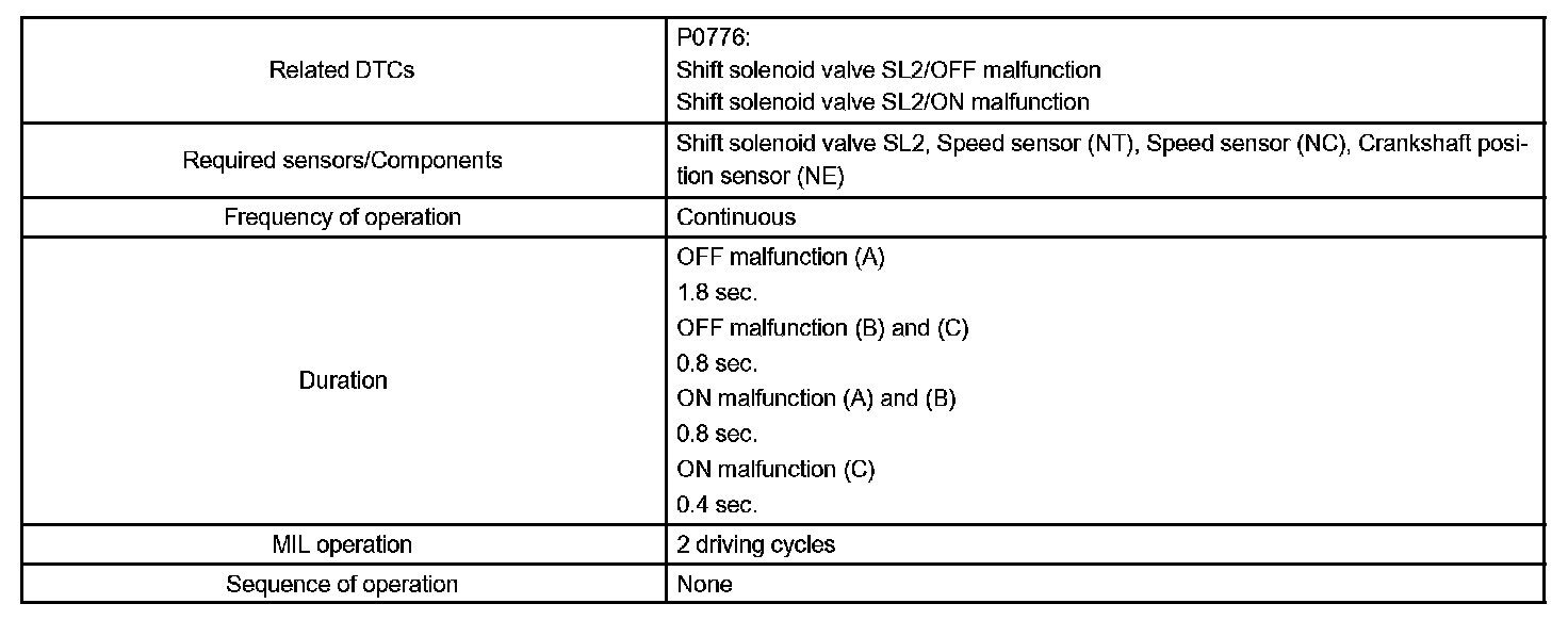 DTC P0776 PRESSURE CONTROL SOLENOID "B" PERFORMANCE (SHIFT SOLENOID VALVE SL2)SYSTEM DESCRIPTION