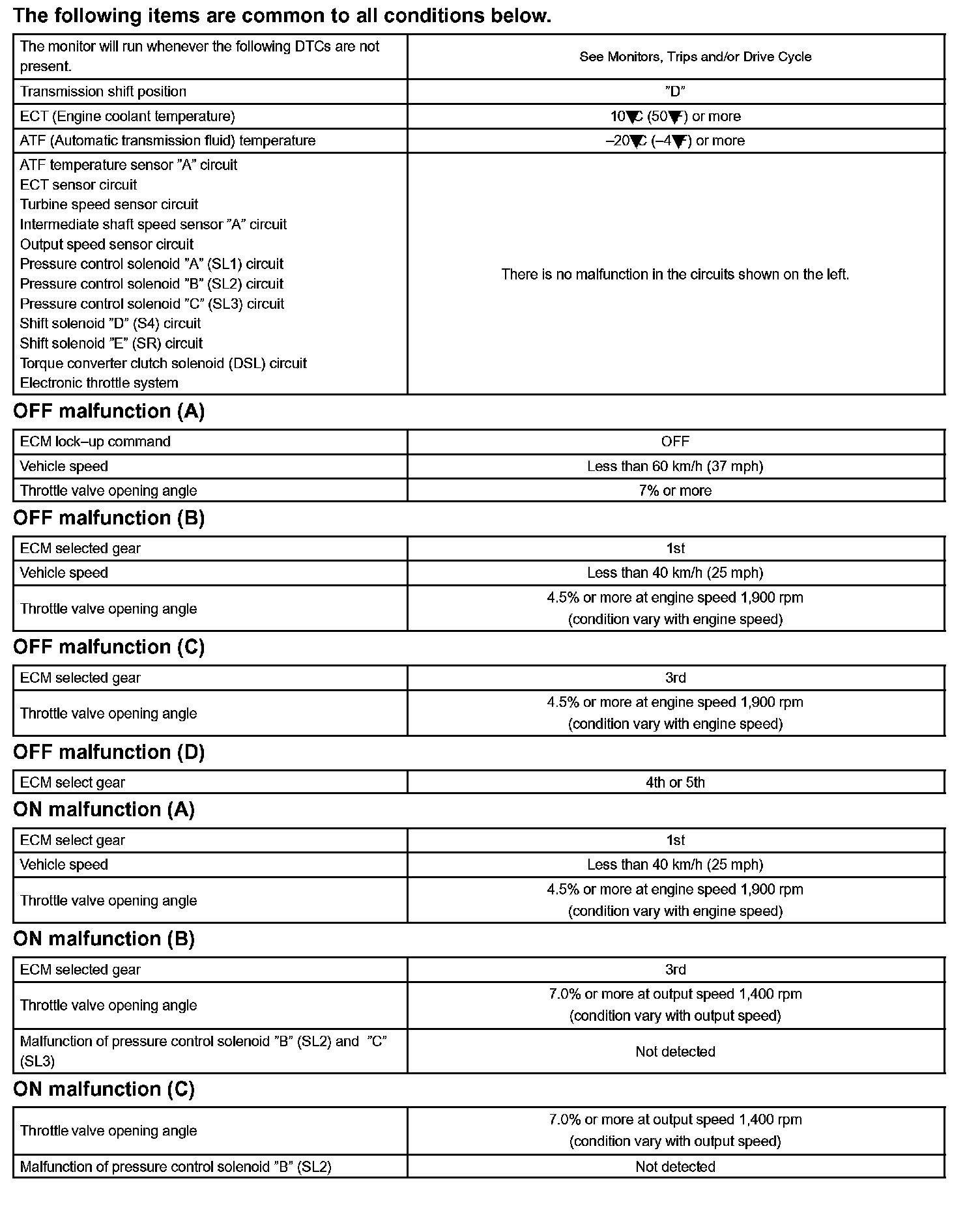 Then the ECM compares the actual gear with the shift schedule in the ECM memory to detect mechanical problems of the shift solenoid valves and valve body.