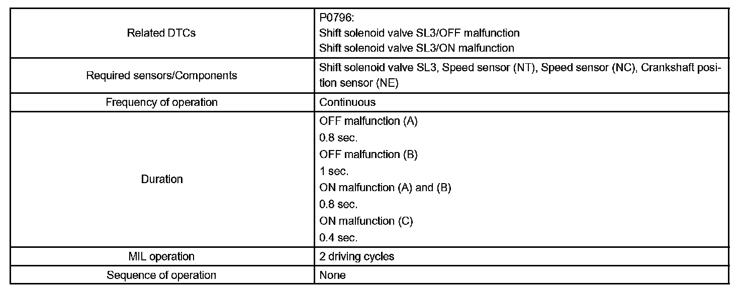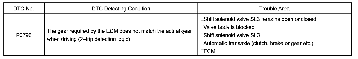 DTC P0796 PRESSURE CONTROL SOLENOID "C" PERFORMANCE (SHIFT SOLENOID VALVE SL3)SYSTEM DESCRIPTION