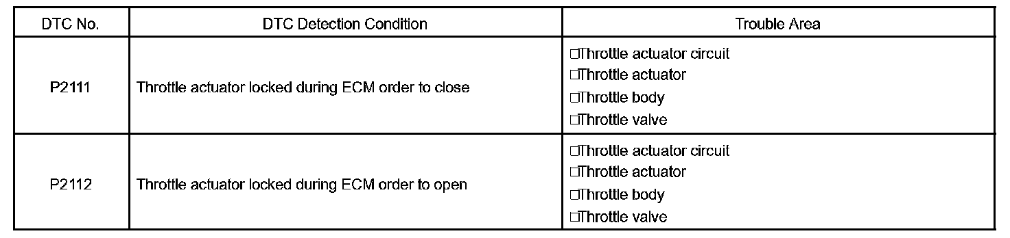 DTC P2111 THROTTLE ACTUATOR CONTROL SYSTEM - STUCK OPENCIRCUIT DESCRIPTION