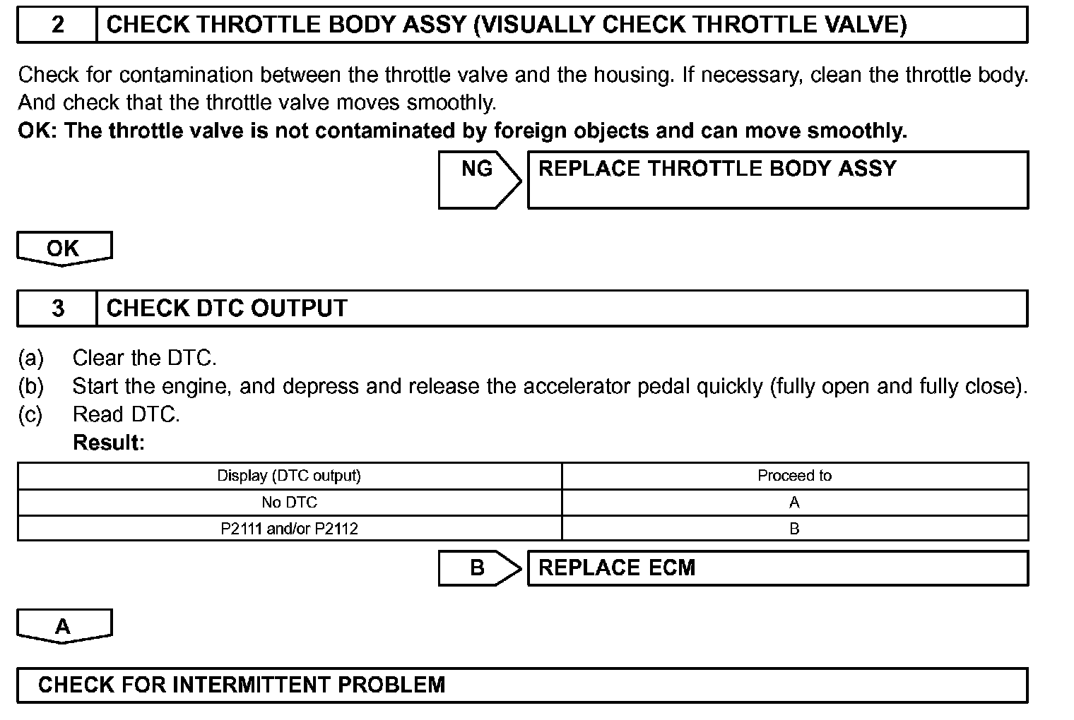CHECK FOR INTERMITTENT PROBLEMS