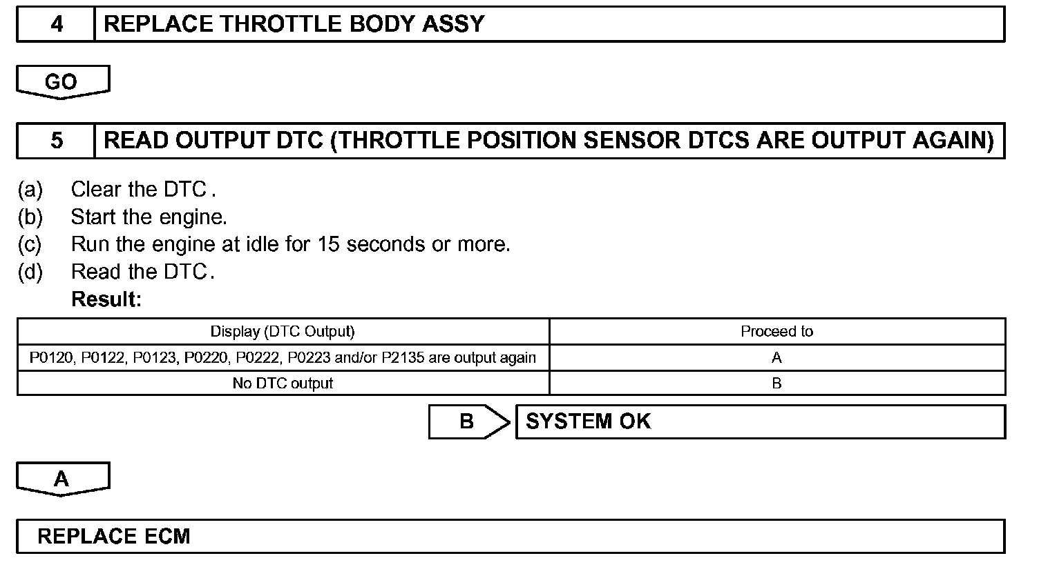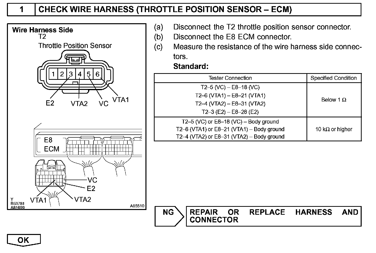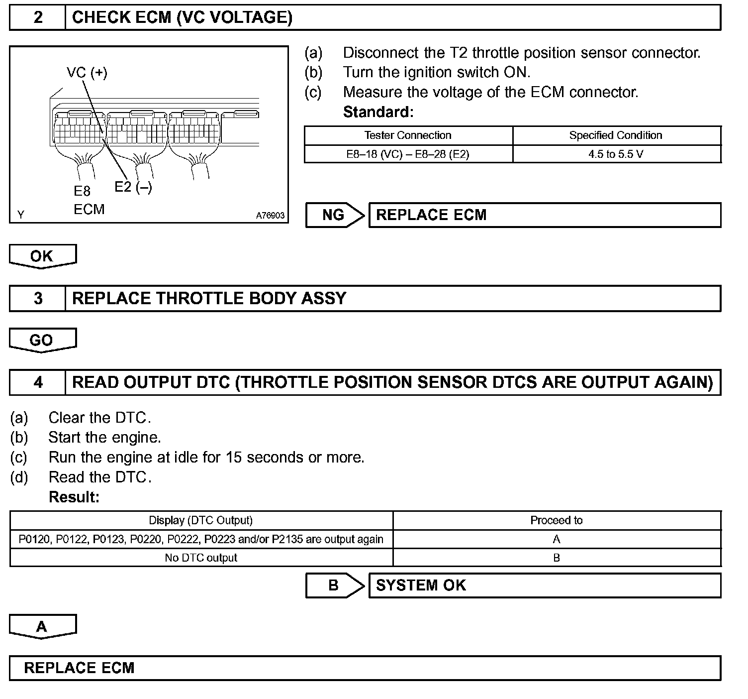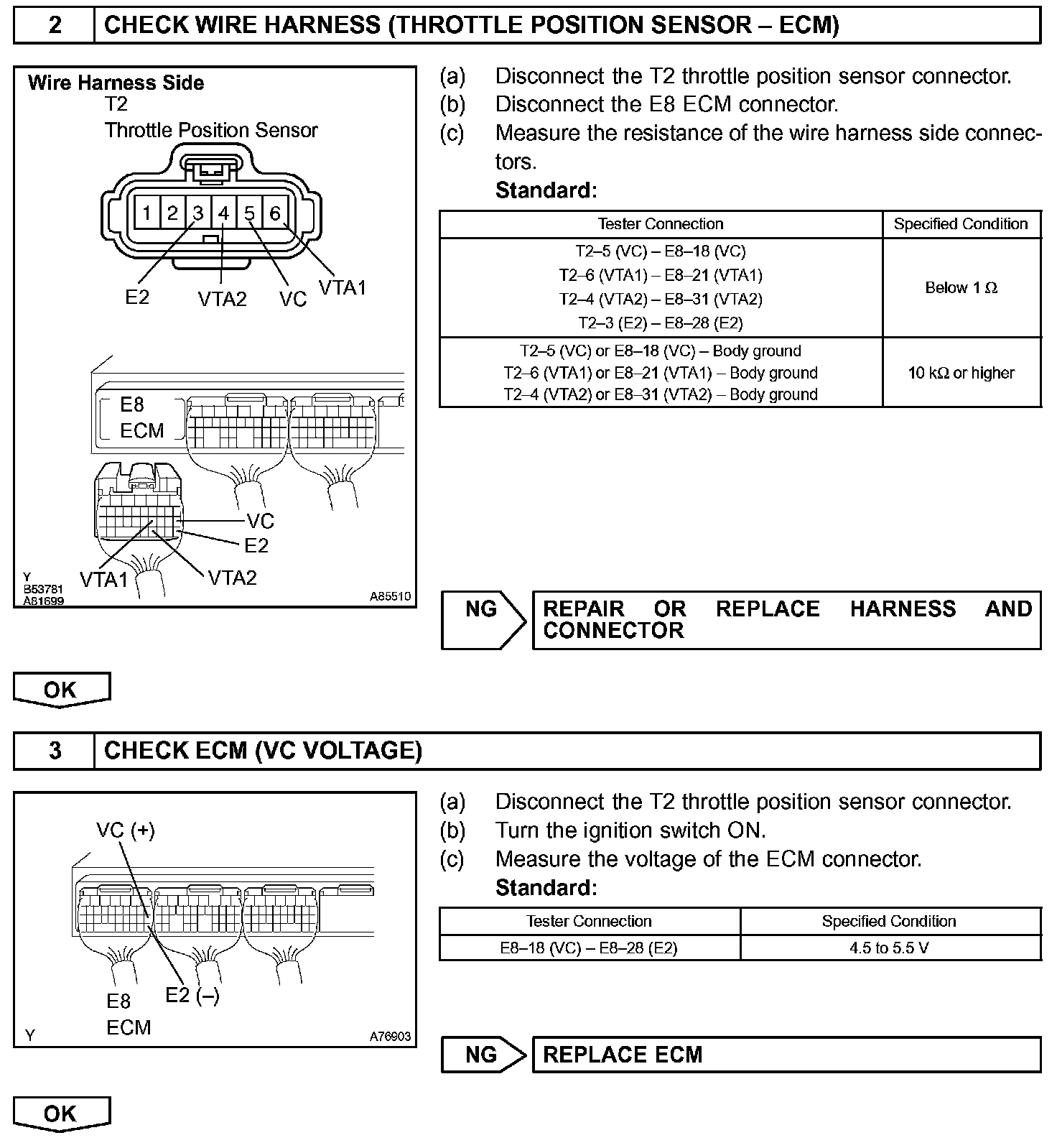- If VTA1 is within 0.02 V of VTA2, the ECM interprets this as a short circuit in the throttle position sensor system and will set a DTC.