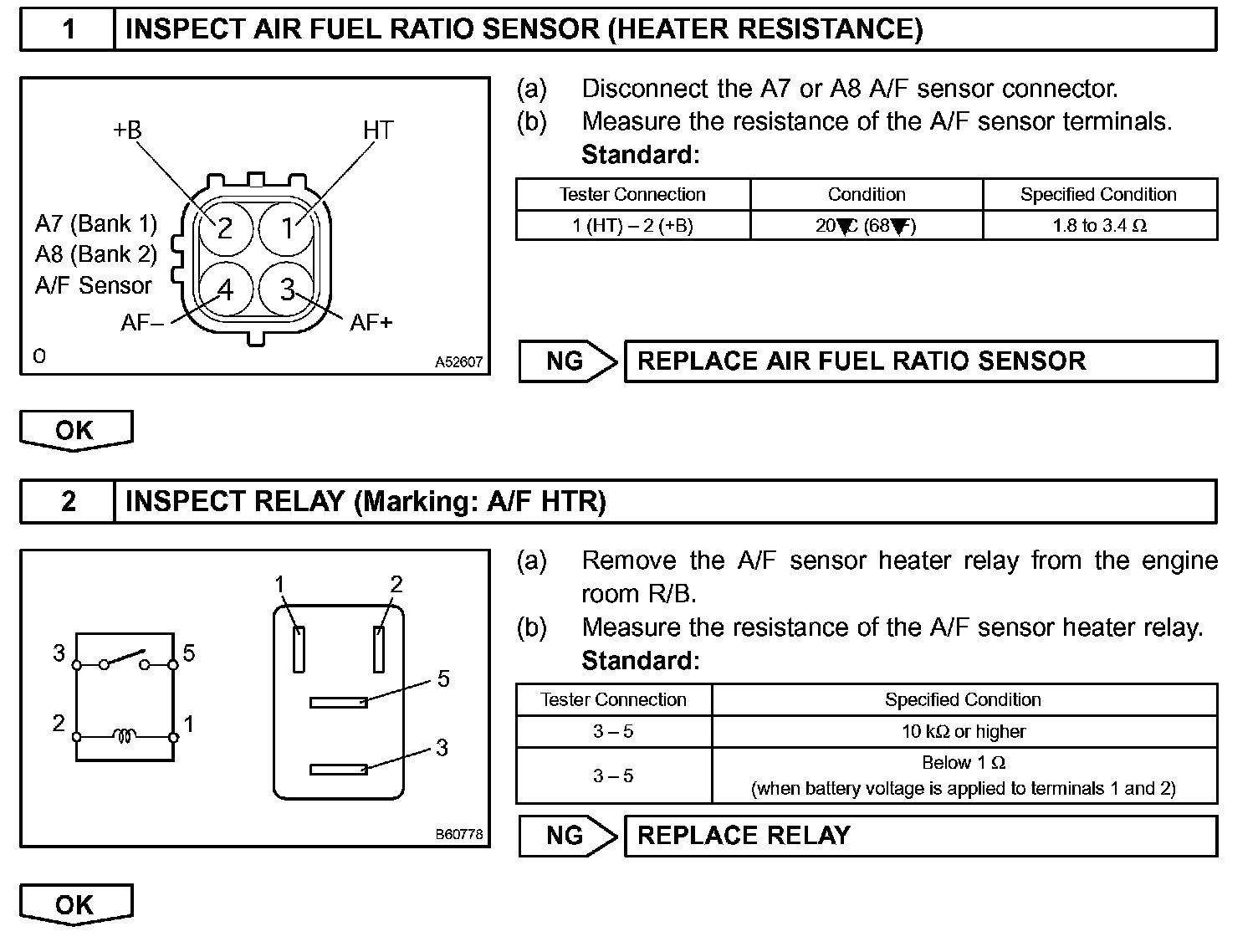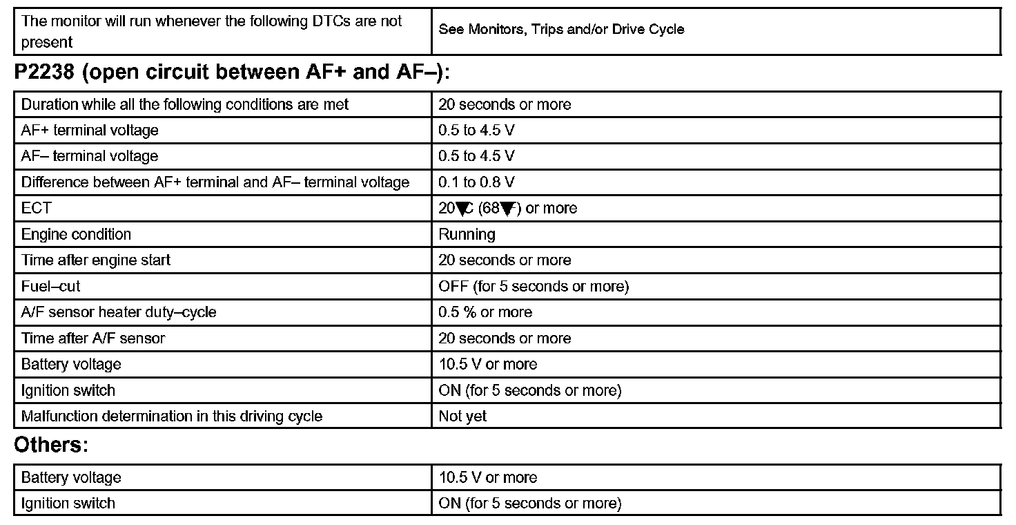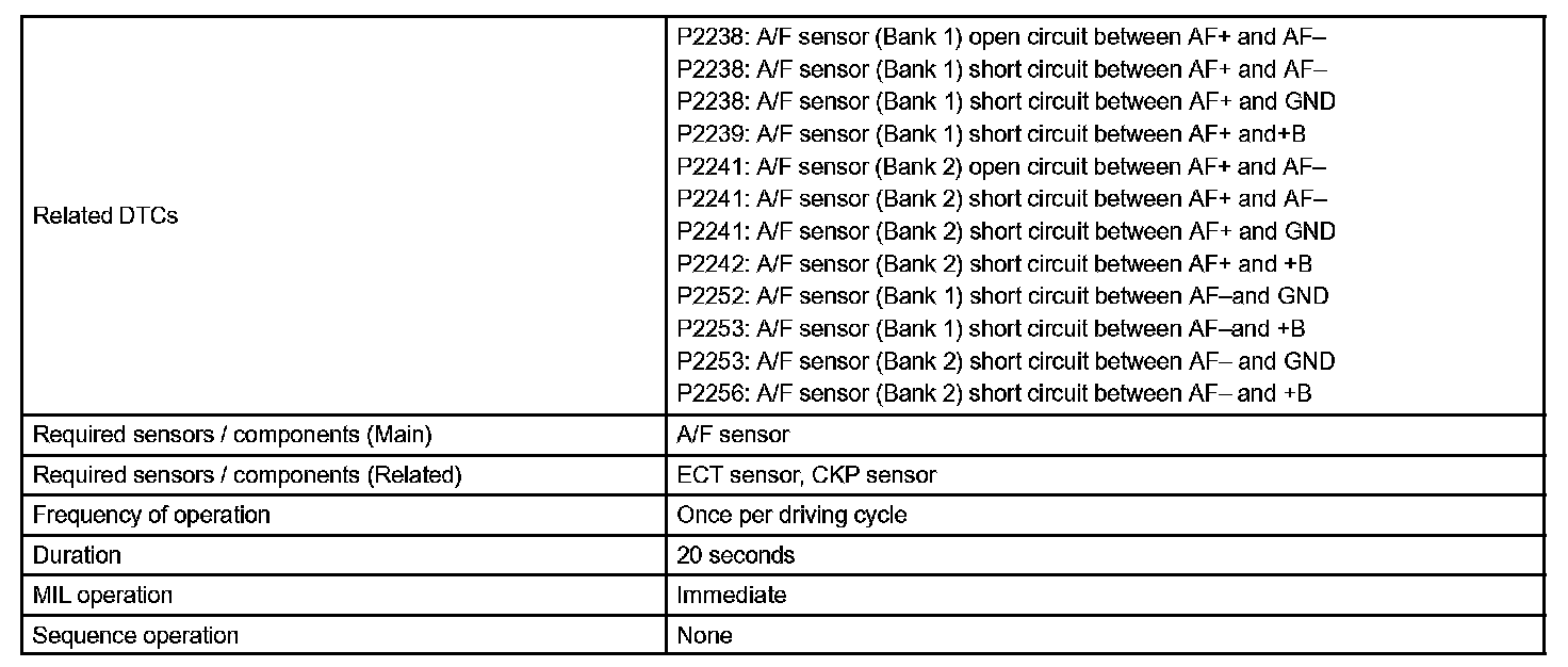 - Although the title (DTC description) says "oxygen sensor", this DTC is related to the "A/F sensor".