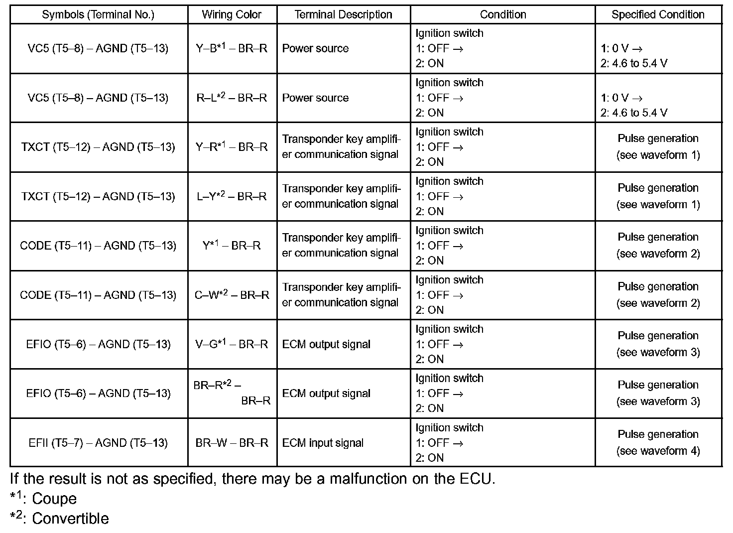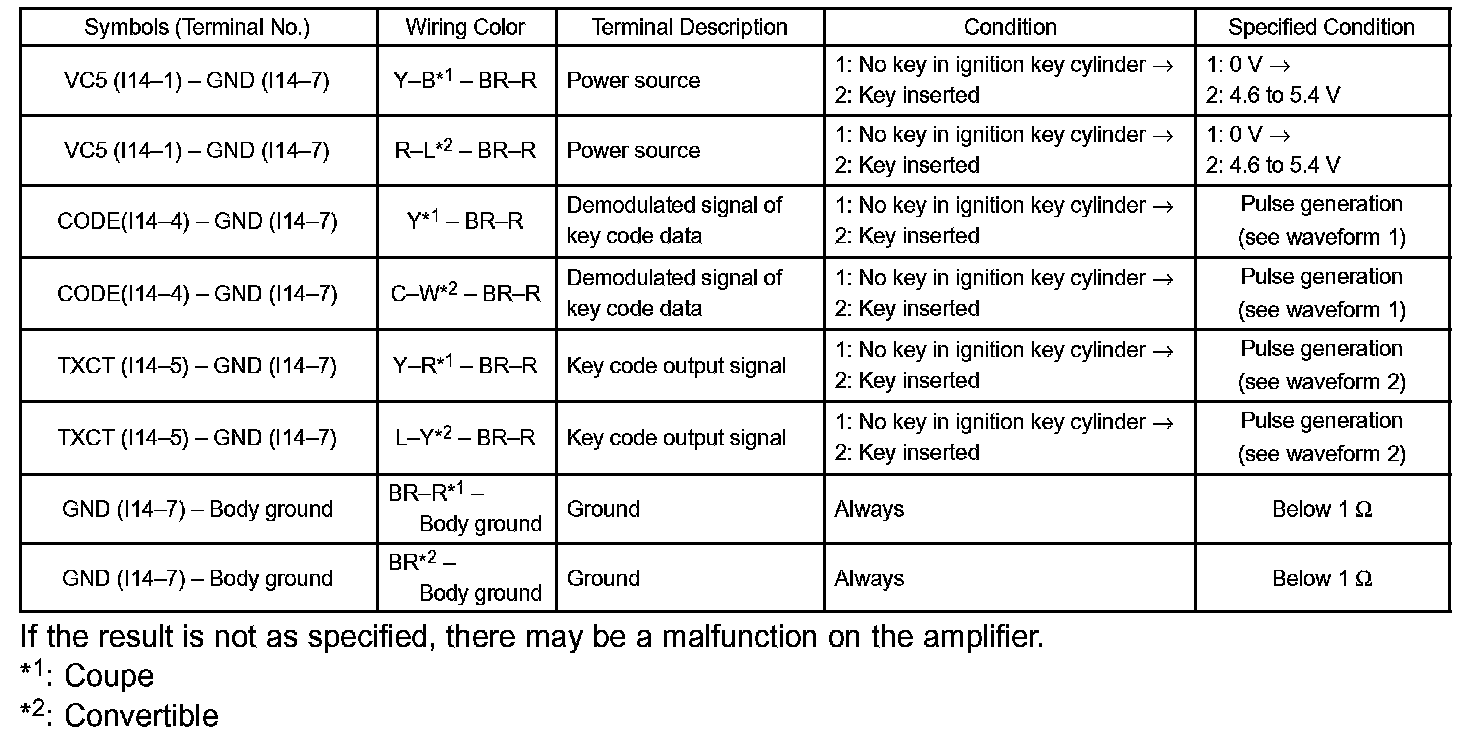 TERMINALS OF ECU1. CHECK TRANSPONDER KEY AMPLIFIER