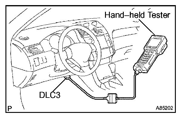 HINT: Connect the cable of the hand-held tester to the DLC3, turn the ignition switch ON and attempt to use the hand-held tester. If the screen displays the message UNABLE TO CONNECT TO VEHICLE, there is a problem either with the vehicle or with the tester.