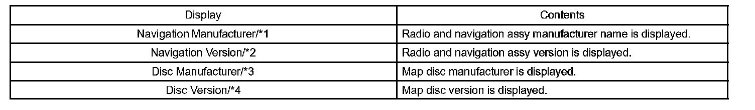 - This mode displays product information on the radio and navigation assy and discs.