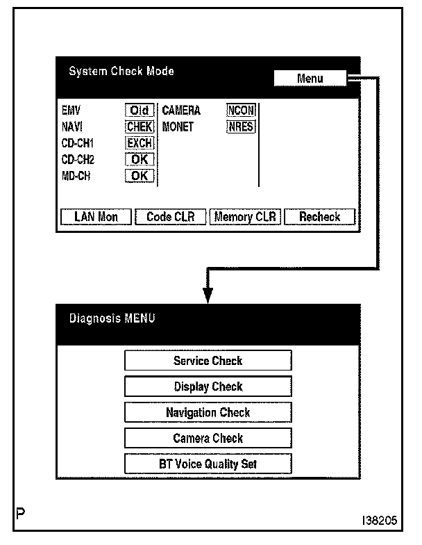 - After the ignition switch is turned on, check that the map is displayed before starting the diagnostic mode. Otherwise, some items cannot be checked.