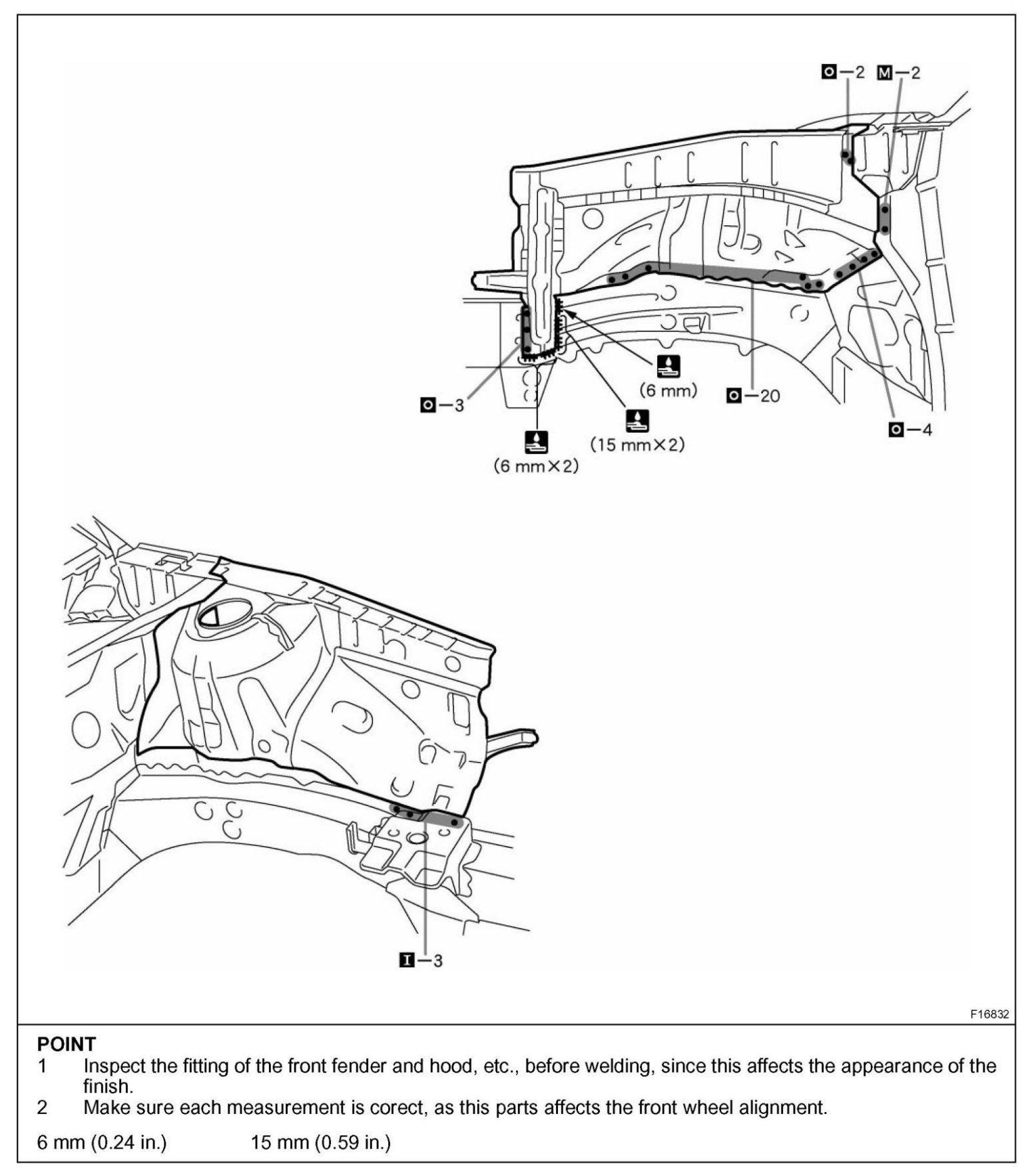 - Inspect the fitting of the related parts around the new parts before welding. This affects the appearance of the finish.