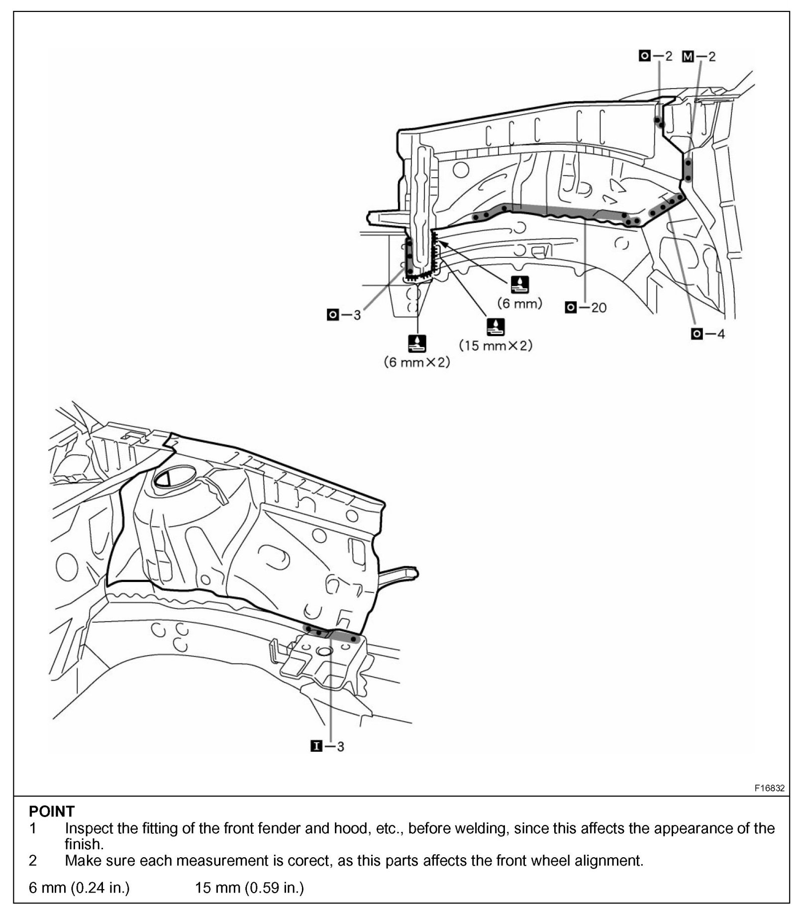 - Inspect the fitting of the related parts around the new parts before welding. This affects the appearance of the finish.