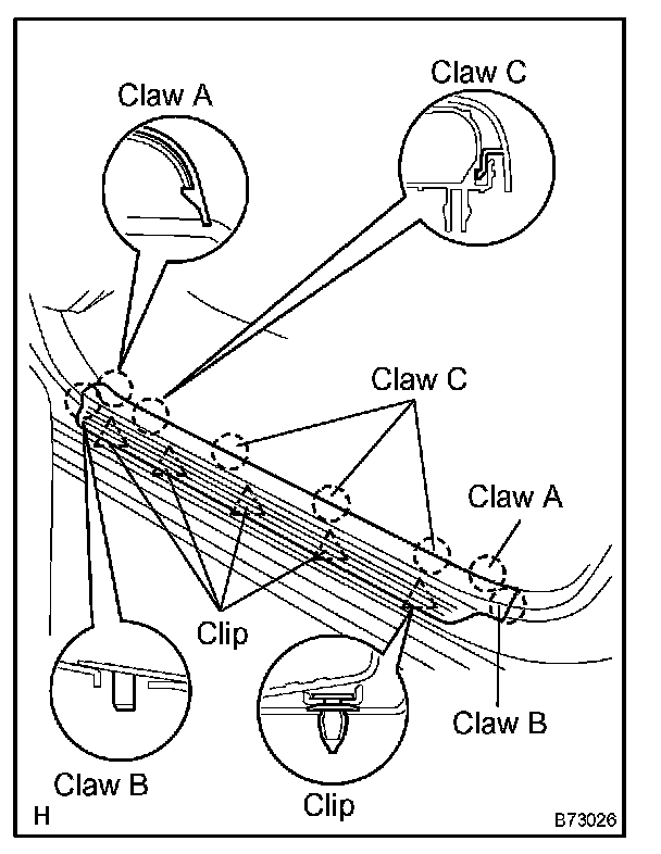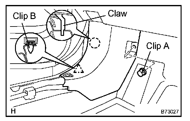 b. Disengage the claw and clip labeled B, and remove the side trim.