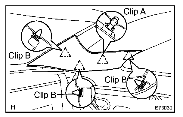 a. Using a clip remover, remove the 4 clips and roof headlining.