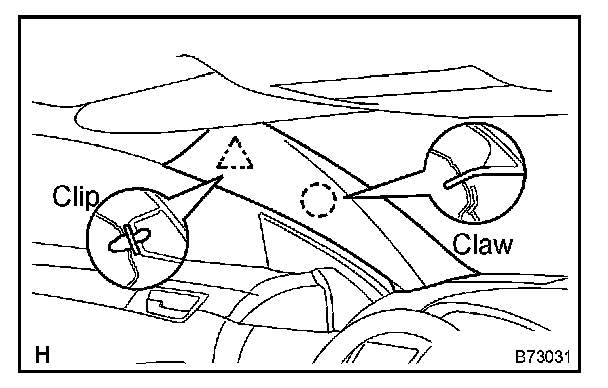a. Using a screwdriver, disengage the claw and clip, and remove the pillar garnish.