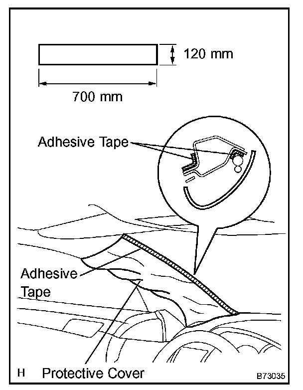 1. Cover the airbag with cloth or a piece of nylon approximately 700 mm (27.56 in.) X 120 mm (4.72 in.) in size. Fix the ends of the cover with tape as shown in the illustration.