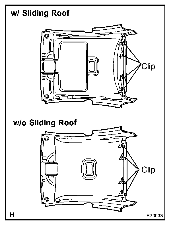 b. Install the roof headlining with the 4 clips.