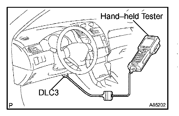 HINT: Connect the cable of the hand-held tester to the DLC3, turn the ignition switch ON and attempt to use the hand-held tester. If the screen displays the message UNABLE TO CONNECT TO VEHICLE, there is a problem either with the vehicle or with the tester.
