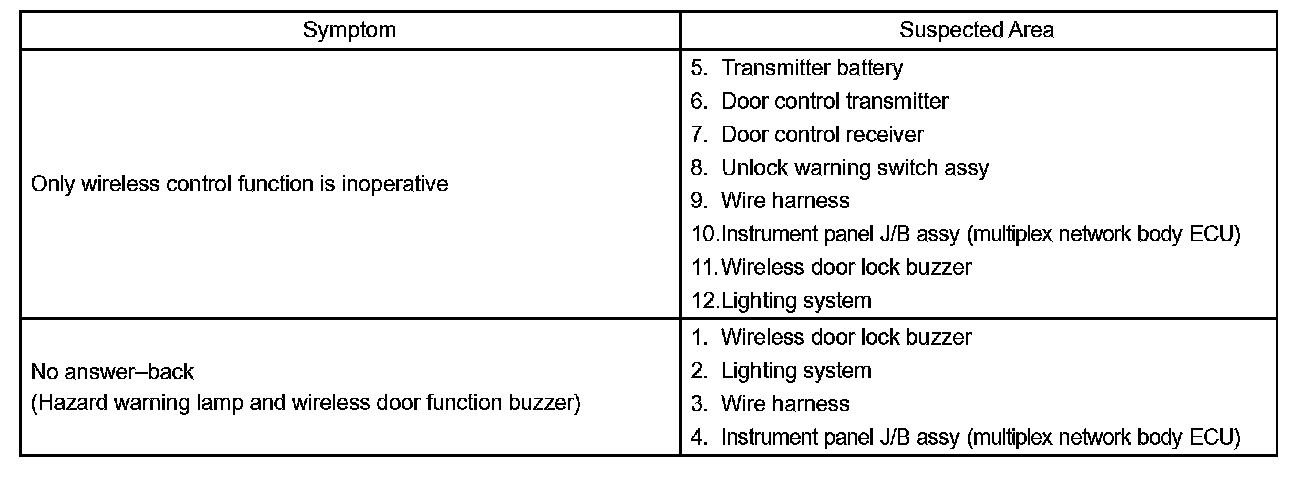 Problem Symptoms Table: