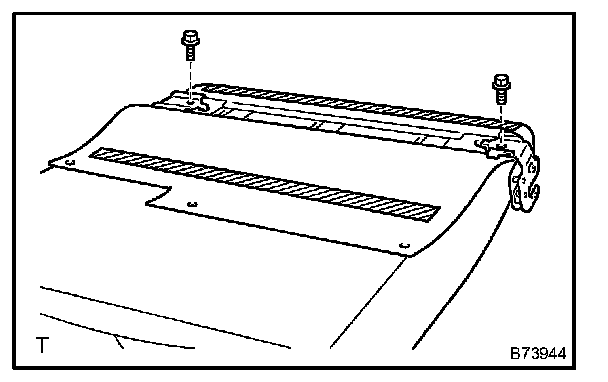 b. Remove the 2 bolts, rear seatback hinge RH and rear seatback hinge center.