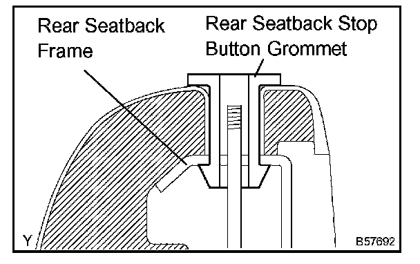 c. Install the 2 headrest supports and the rear seatback stop button grommet.