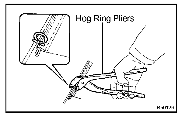 a. Using hog ring pliers, install the seat cushion cover to the seat cushion pad with new hog rings.