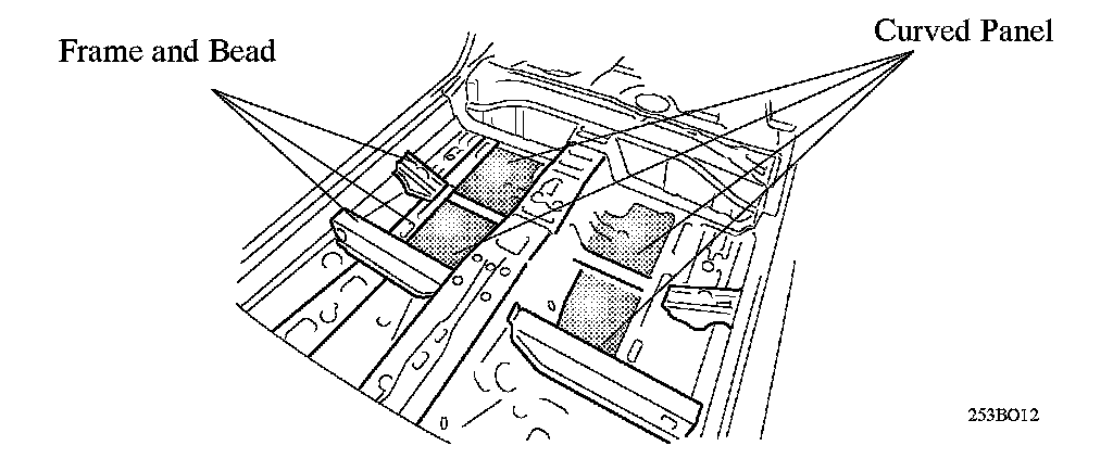 (5) A curved panel has been adopted to most of the front floor panel in order to ensure a high level of rigidity. The frame and beads that separate the floor surface help prevent the floor panel from vibrating.