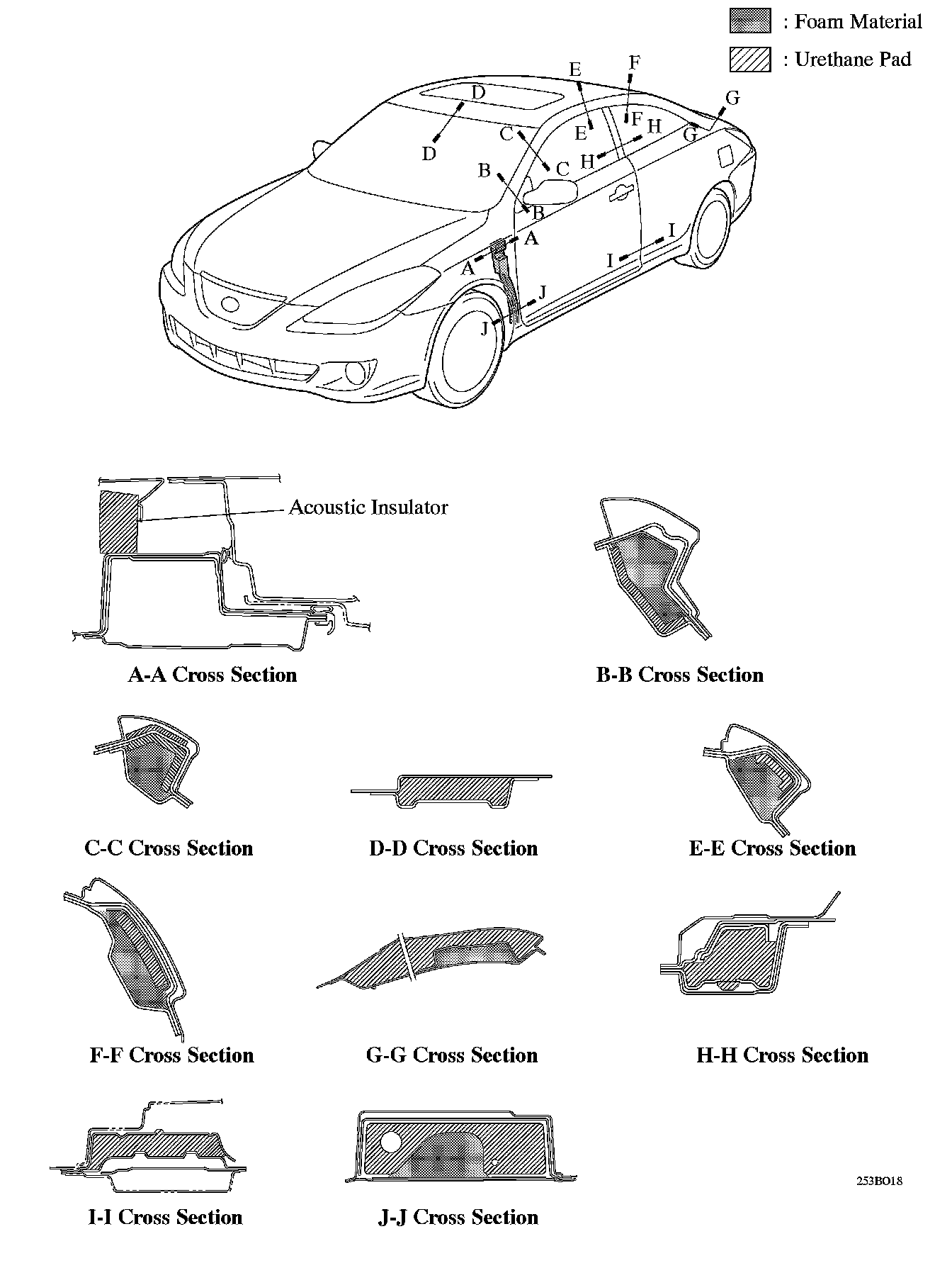 Acoustic sealing materials have been provided in various areas of the body to achieve excellent sound insulation performance.