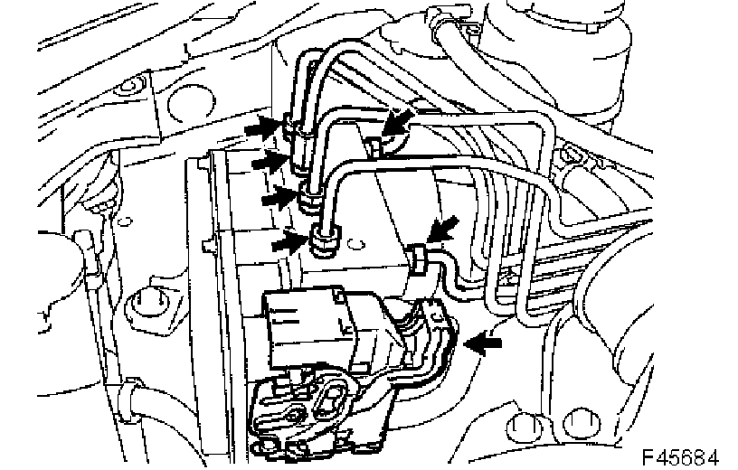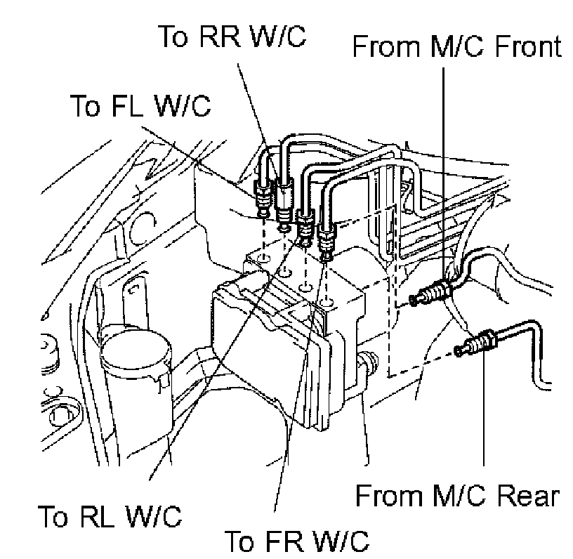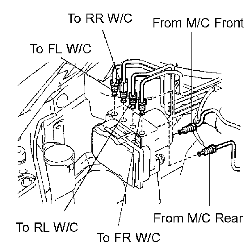 b. Using SST, connect each brake line to the correct position of the brake actuator, as shown in the illustration.