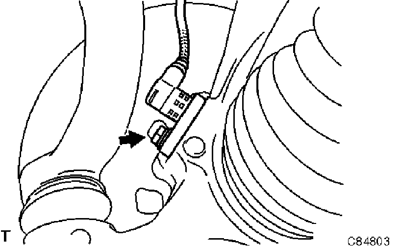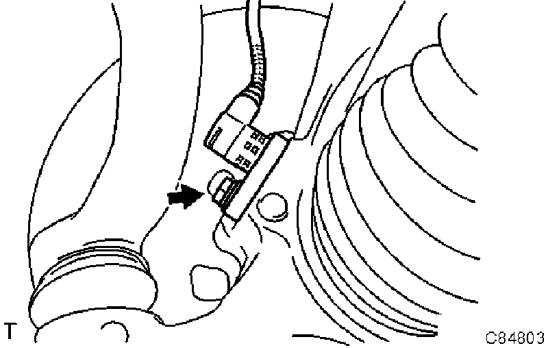 b. Remove the 2 clamp bolts and disconnect the speed sensor harness from the body and shock absorber.