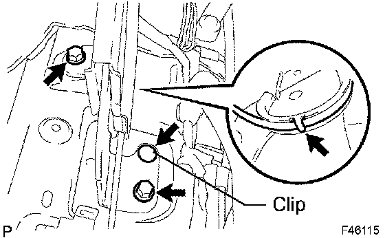 c. Remove the 2 bolts and clip.