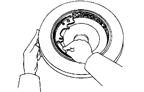 NOTICE: There should be no oil or grease adhering to the friction surface of the shoe lining and disc.