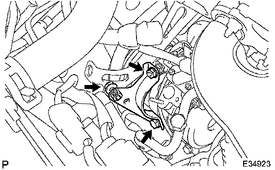 b) Remove the 2 nuts and generator bracket adjusting bar with the wire harness clamp bracket.