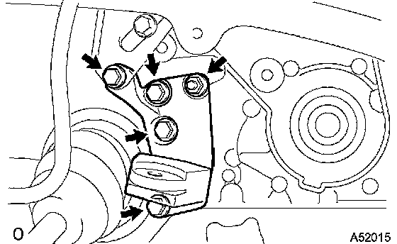 a) Remove the 2 bolts, nut and drive belt adjusting bar bracket.