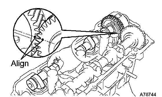 HINT: When installing the camshaft, make certain that the torsional spring force of the sub gear has been eliminated by installation of the service bolt.