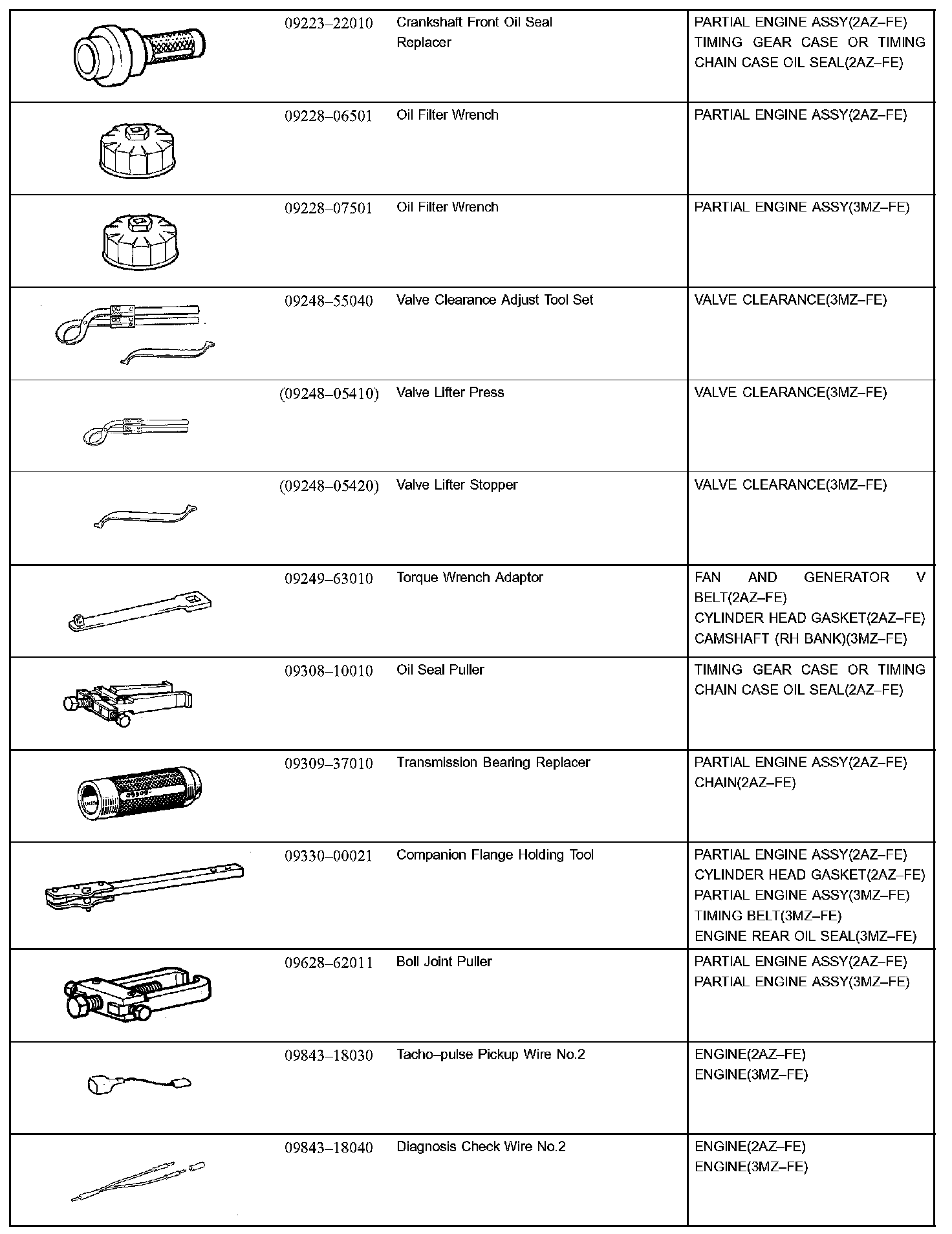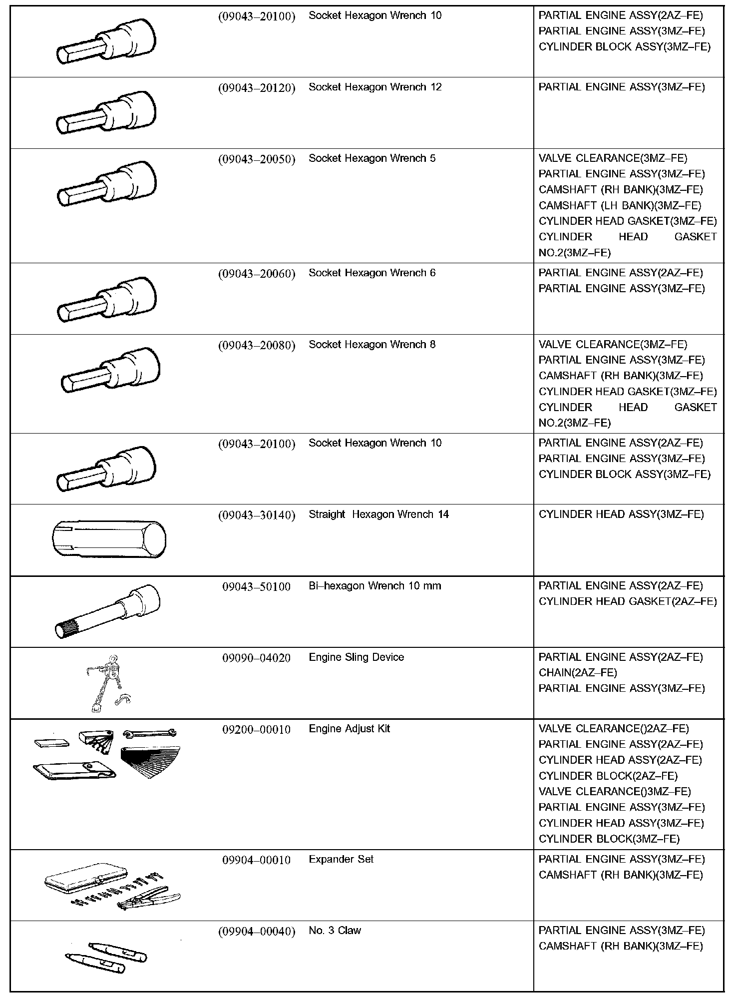 Engine Mechanical - Recommended Tools Part 1: