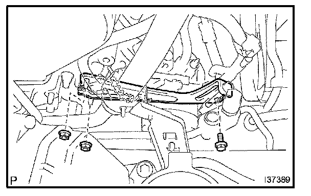 a. Remove the 2 nuts, bolt and generator belt adjusting bar.