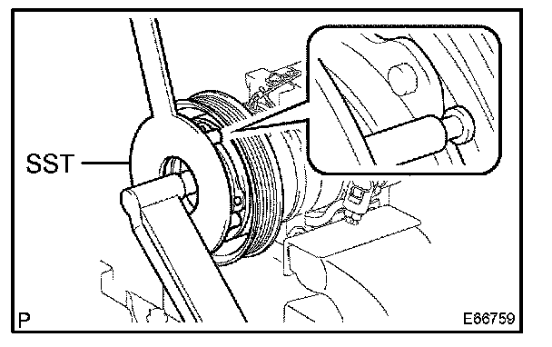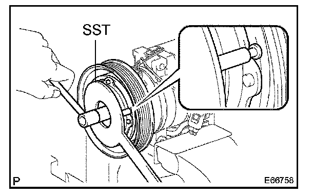 f. Using SST, hold the magnet clutch hub and install the bolt.